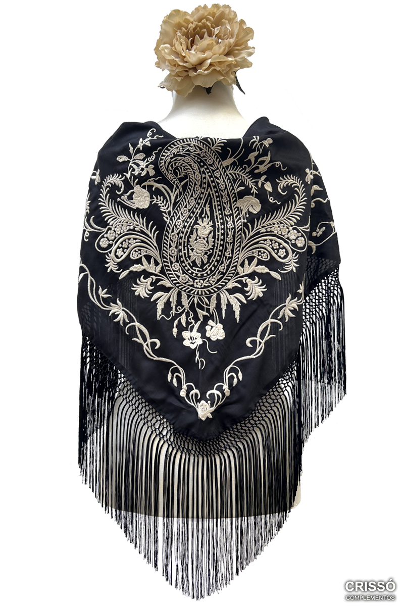 MANTÓN GABRIELA NEGRO CON BEIGE