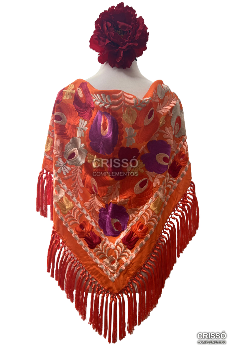 • MANTÓN AGATA NARANJA CON BUGANVILLA