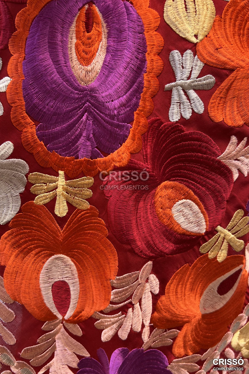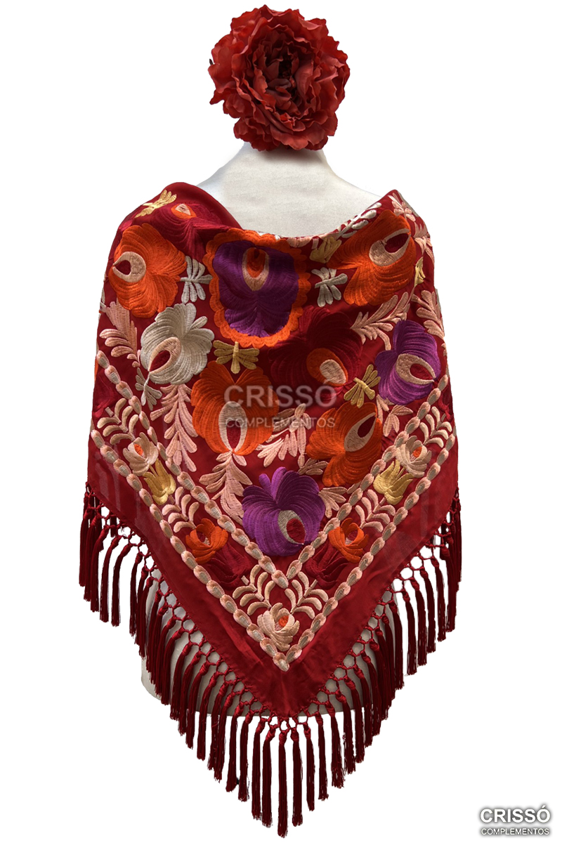 • Mantón Carla burdeos con rojo seda
